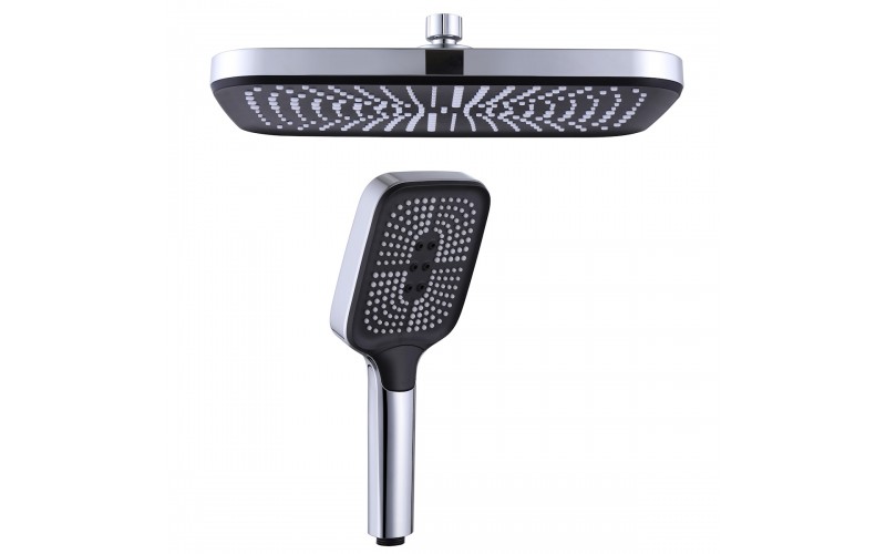 | Оснащение | Смеситель, верхняя (тропическая) лейка ABS d=315*210 мм, релинг- раздвижной, ручной душ- пластик, шланг- металлический 150 см.Встроенный излив в переключатель на душевую лейку. |