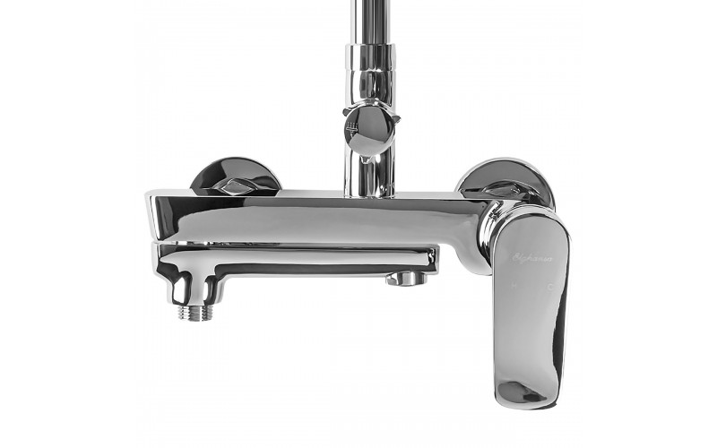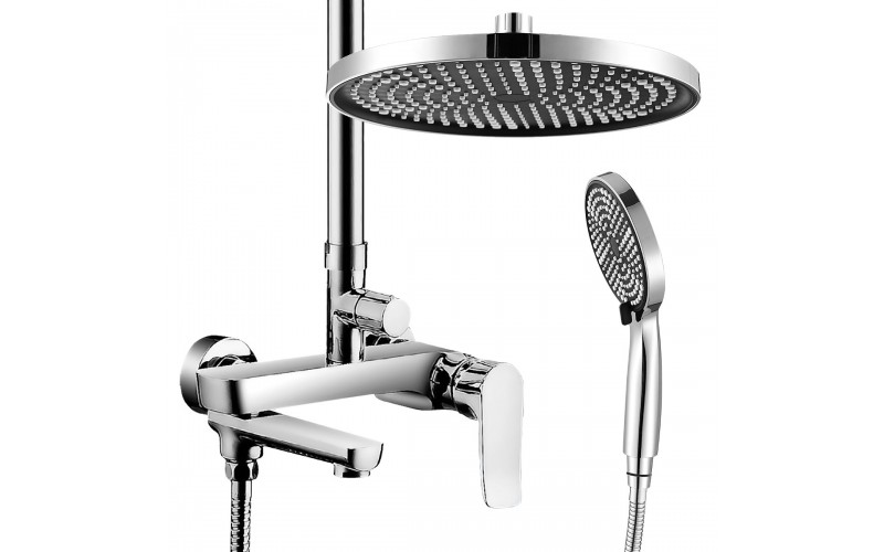 | Оснащение | Смеситель, верхняя (тропическая) лейка ABS d=254 мм, релинг- раздвижной, ручной душ- пластик, шланг- металлический 150 см.Встроенный излив в переключатель на душевую лейку. |