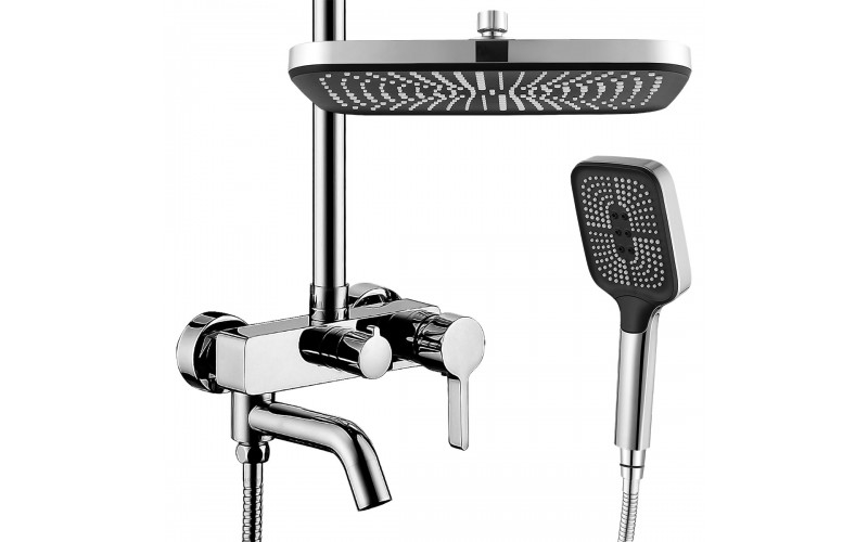| Оснащение | Смеситель, верхняя(тропическая) лейка ABS, d=315*210 мм, релинг-раздвижной, ручной душ-пластик, шланг-металлический 150 см. Встроенный в излив переключатель на душевую лейку. |