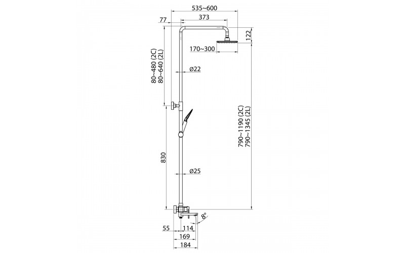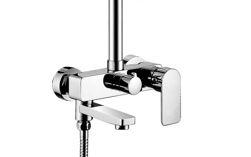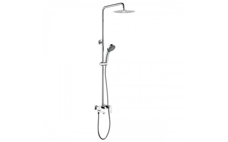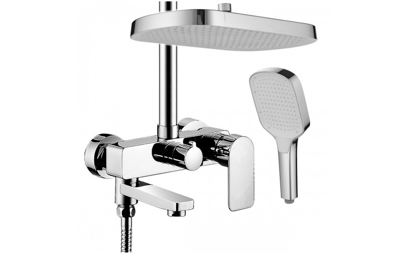 | Оснащение | Смеситель, верхняя(тропическая) лейка ABS d=335*225мм, ручной душ-пластик, шланг- металлический 150 см,душевой релинг-раздвижной.Встроенный в излив переключатель на душевую лейку |