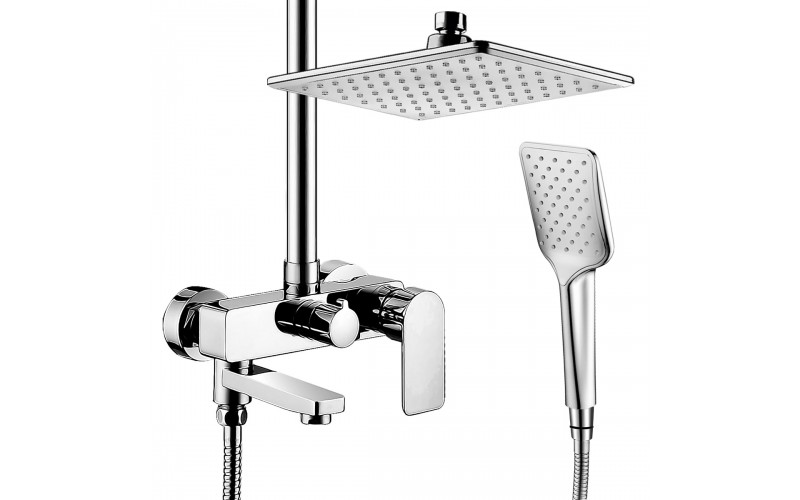| Оснащение | Смеситель, верхняя( тропическая) лейка ABS d=250*170 мм, релинг-раздвижной, ручной душ- пластик, шланг-металлический 150 см. Встроенный в излив переключатель на душевую лейку. |